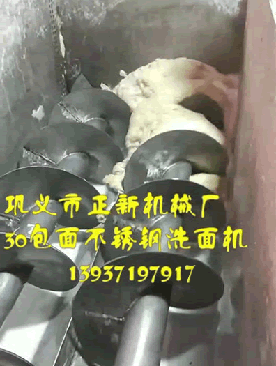 4、洗面筋機洗面:停機12分鐘后,可往面斗內(nèi)倒入30斤左右的水,開機洗面,洗至3分鐘后停機排面漿。